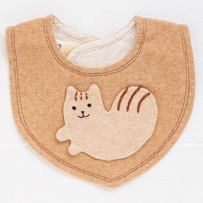 透かし柄がかわいい本体に、シマ柄と笑顔がキュートなシマリスを半立体で表現したモチーフ、周りのステッチカラーがデザインポイントになっています。