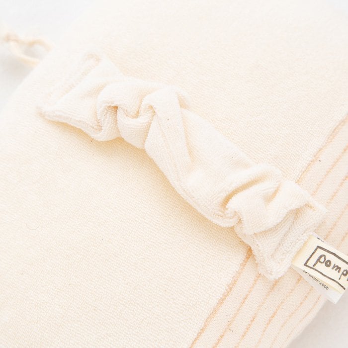 綿本来の色を生かした、染色していないオーガニックコットン100%の生地を使用しているので、吸水性にすぐれ、とっても気持ちよい肌触り。