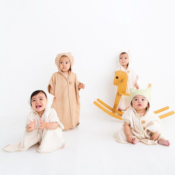 ふんわりとした柔らかな肌触りのオーガニックコットン生地で仕上げたベビーちゃん用バスポンチョ。