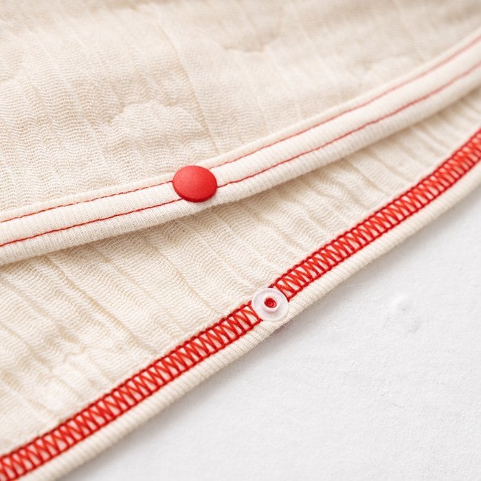 ねんねの時や、湯上がりの湯冷め防止などに大活躍。新生児の頃からあんよの頃まで長く使えます。ポケットから顔を出している中綿入りのぷっくりとしたモチーフ(うさぎ・くま)がとってもキュート。