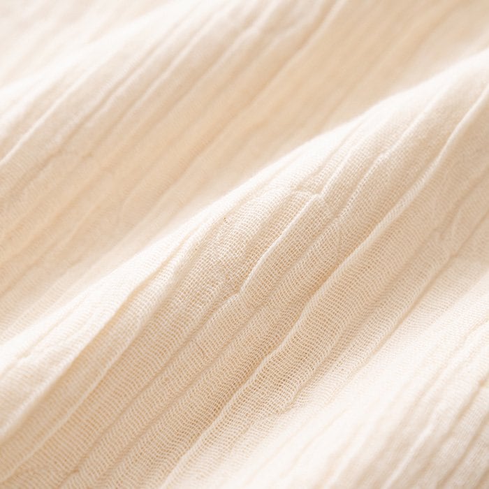 ガーゼを重ねて更にしわ加工することで重なりを増やし、空気を含んでふんわりやわらかに仕上げたジャガード水玉柄スリーパーです。(ナチュラルは同色なので水玉が見えづらくなっています)