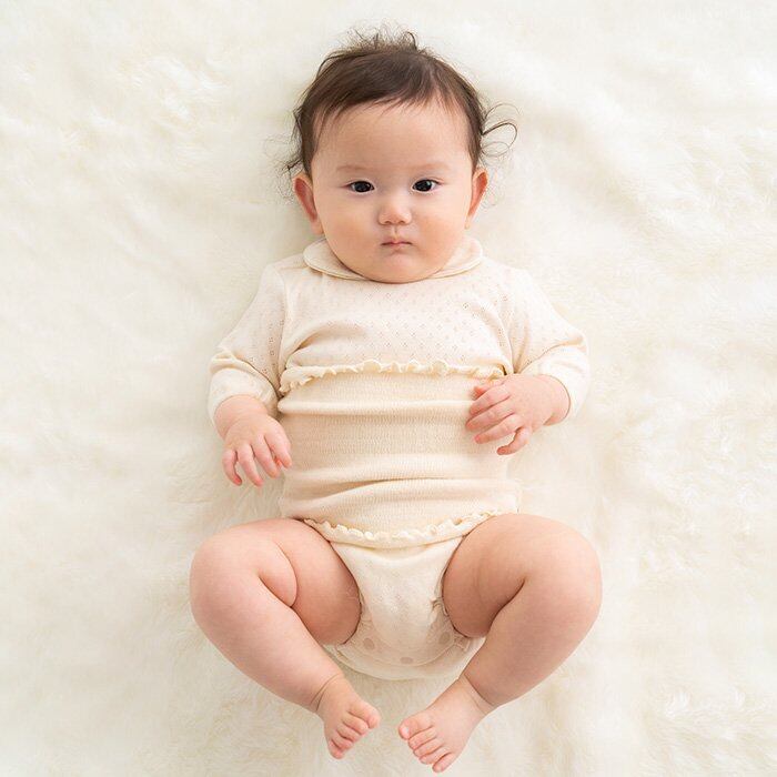 やわらかくて伸びの良いニットが身体にやさしくフィットするベビー用はらまきです。ねぞうの気になる赤ちゃんのおなかを守ります。端のメロー加工がポイント。ギフトにも喜ばれるアイテム。ヘアバンドとしても使えます。