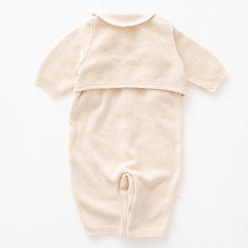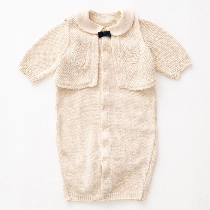 新生児のころはドレス型、足の動きが活発になってきたらカバーオール型にできるので、長い間使えます。